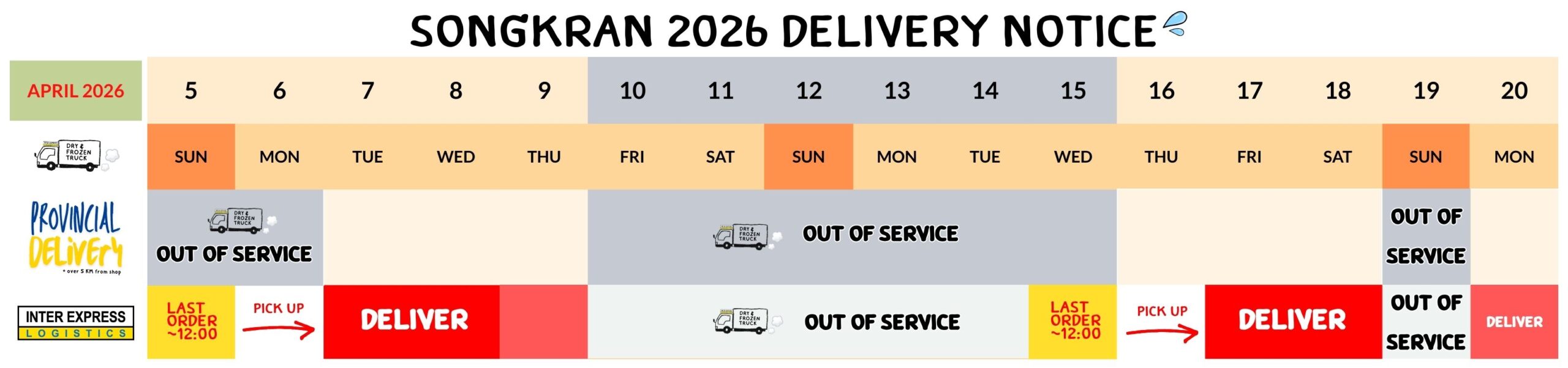 มันจะราบรื่นถ้าคุณสั่งซื้อ ก่อน 12:00 น. ตั้งแต่วันอาทิตย์ถึงวันพฤหัสบดี